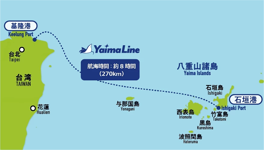 图片来源:Yaima Line在航行时间方面,基隆到石垣岛单程约8小时,是一段不算短的海上旅程。这条渡轮本来就不是主打快,而是把移动本身也当成旅行的一部分来设计。 如果你行程比较弹性,或本来就喜欢慢慢移动、体验不同交通方式,8小时的航程反而是一种新鲜体验;但若是假期天数有限、希望快速抵达目的地,这条渡轮可能就需要多考虑一下。