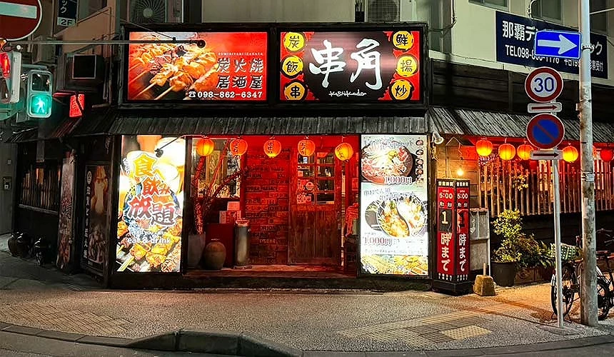 位于冲绳那霸热闹地带的居酒屋「串角」是当地人与游客都爱去的下班宵夜选择。这里提供各式木炭手工串烧、猪鸡牛海鲜的涮涮锅、关东煮,选择种类多达六、七十种,再配上生啤酒、泡盛与梅酒等饮品,就算一路吃喝到深夜也有人气。店内气氛温馨,有灯笼、木系装潢与暖色灯光,进去就像回到日式小酒馆。尤其店址方便,就在热门商圈走路可到的位置,只要想大口吃串烧、喝酒聊天,「串角」都能让你感受到冲绳日常的居酒屋文化。